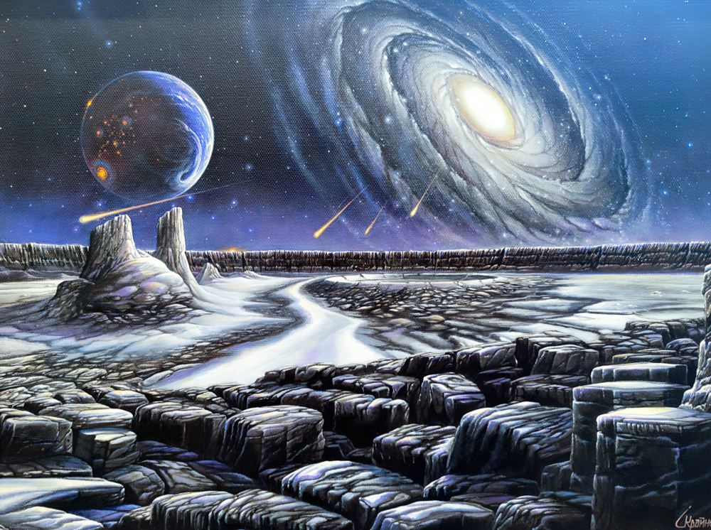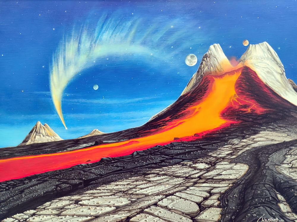 Никакая совершенная аппаратура не может передать увиденное в космосе. Только человеческий глаз и кисть художника способны донести до людей красоту Земли, таинственность и неизведанность космоса.