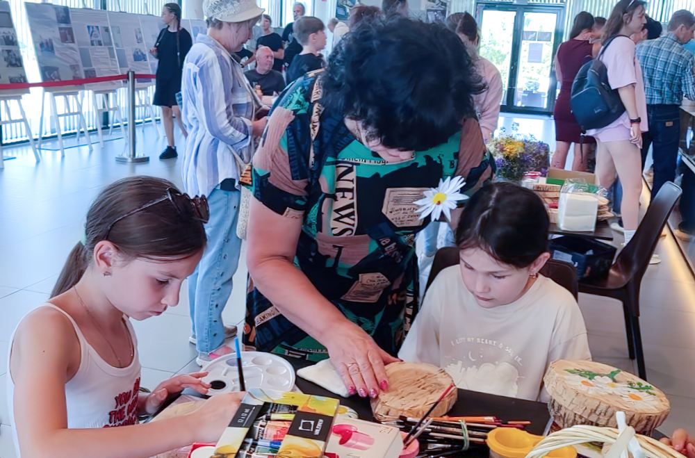 Для всех желающих в течение дня работала творческая мастерская, где дети и взрослые могли почувствовать себя художниками, рисуя на камнях и спиле дерева и создавая собственное творение — брошь-ромашку, ставшую в этот день настоящим символом лета.